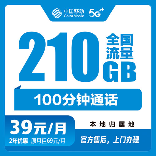 移动39元210G+100分钟