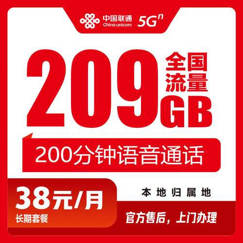 联通粤菜卡38元包260G通用+通话0.15元/分钟