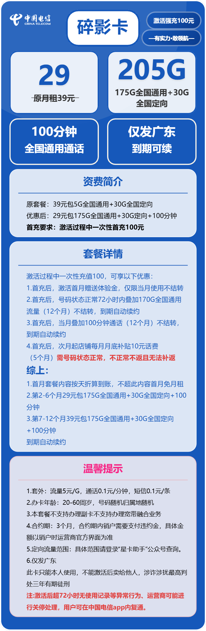 电信碎影卡29元包175G通用+30G定向+100分钟通话流量卡代理8小时前发布1.8W+785 年龄限制:20-60周岁 套餐合约:3个月 配送方式:顺丰/ems 激活方式:快递员上门激活 首充渠道:激活过程中一次性首充100元 免费领取 包邮到家 © 版权声明分享是一种美德,转载请保留原链接THE END电信流量卡 点赞是一种美德点赞785