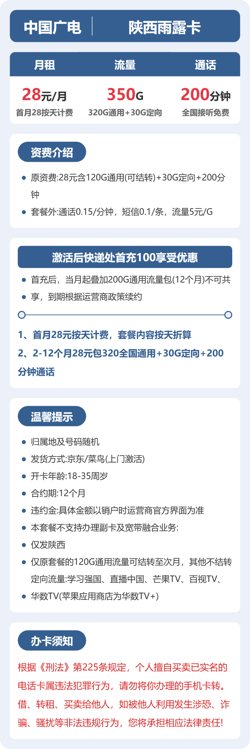 广电陕西雨露卡28元包350G+200分钟流量卡代理6小时前发布3.8W+856 年龄限制:18-35周岁 套餐合约:12个月 配送方式:线下派送 激活方式:快递员上门激活 首充渠道:激活当月专属渠道充值100 免费领取 包邮到家 © 版权声明分享是一种美德,转载请保留原链接THE END广电流量卡 点赞是一种美德点赞856